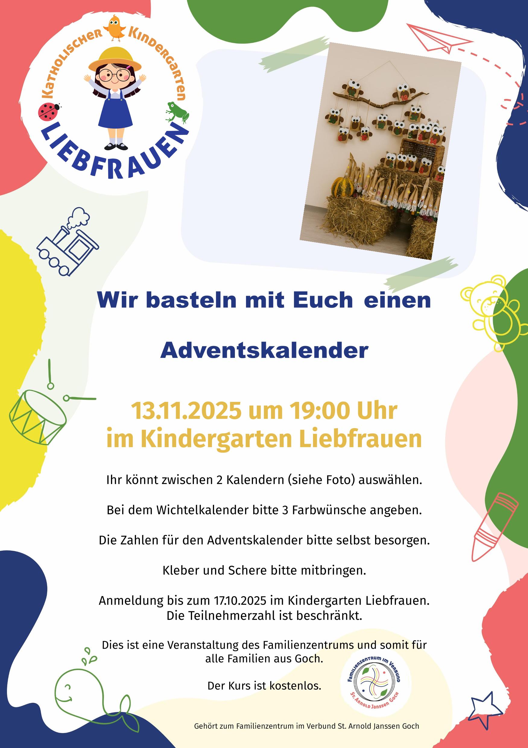 Gerne möchten wir mit Euch im Kindergarten Liebfrauen einen Adventskalender basteln.