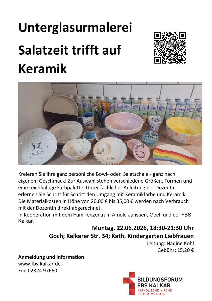 Kreieren Sie Ihre ganz persönliche Bowl- oder Salatschale - ganz nach eigenem Geschmack! Zur Auswahl stehen verschiedene Größen, Formen und eine reichhaltige Farbpalette. Unter fachlicher Anleitung der Dozentin erlernen Sie […]